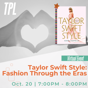 Author Sarah Chapelle will deliver a fascinating presentation based on her recent bestselling book, "Taylor Swift Style: Fashion Through the Eras." For Taylor Swift, fashion and music go hand-in-hand -- each playing a powerful role in shaping the narrative of this generation’s most prolific storyteller. From cowboy boots to teetering heels, fairytale dresses to bleach-tinged tresses, and the many memorable moments in between, learn the fashion story behind every single Taylor Swift album, tracing Swift’s musical evolution along with her ever-changing personal style. Chapelle, creator of the successful Instagram and blog "Taylor Swift Style," has spent more than a decade documenting Swift’s fashion choices and the intention behind each ensemble. This program is made possible through partnership with Tewksbury Public Library. This program is virtual; Zoom link required. This program will be recorded. All registrants will receive the recording via email within 48 hours of the program.